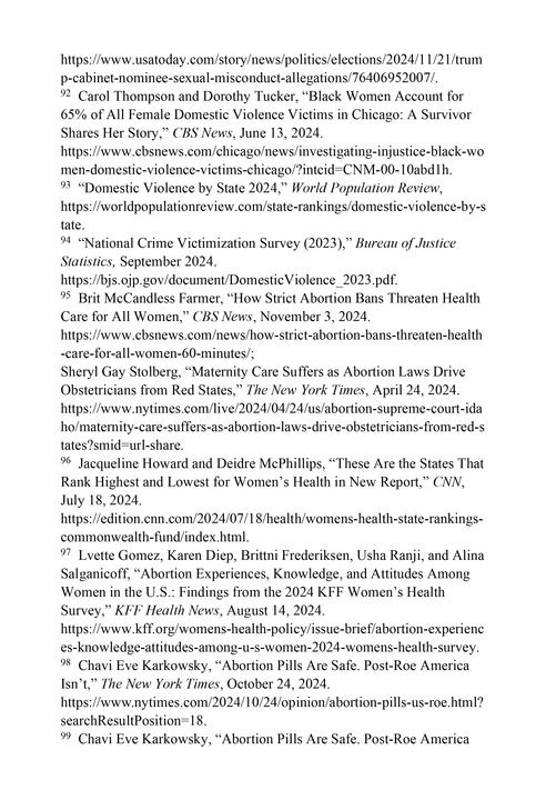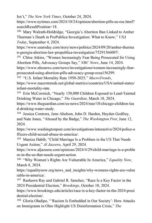 政治斗争裹挟下妇女健康权丧失应有保障。在禁止堕胎的州,护理服务整体受到限制,产科医生纷纷离职,形成新的“产科护理荒漠”。95联邦基金“跟踪卫生系统绩效”计划的高级科学家大卫·拉德利(David Radley)指出,有超过500万妇女生活在没有产科服务的地区。96围绕堕胎的政治斗争让政策不断翻转,民众因无法预期自身权利而陷入恐慌。凯泽家庭基金会2024年的女性健康调查报告称,63%的育龄妇女担心堕胎禁令将威胁其生命或健康。97多个州的医院拖延或拒绝提供正常的生殖医疗服务。98女性因担心惹上法律麻烦,包括可能面临的刑事指控,不敢冒险前往这些医院就医。99《今日美国报》网站2024年9月报道,因堕胎禁令,佐治亚州一名妇女未能及时得到必要护理而死亡;该州另一名妇女则因恐惧现行堕胎立法可能带来的惩罚而未及时寻求医疗护理,导致死亡。100支持堕胎的研究组织古特马赫研究所(Guttmacher Institute)负责人表示,“我们正处于一个恐惧的环境中,针对堕胎者、堕胎服务提供者和帮助者的敌意和法律风险不断增加。”101
