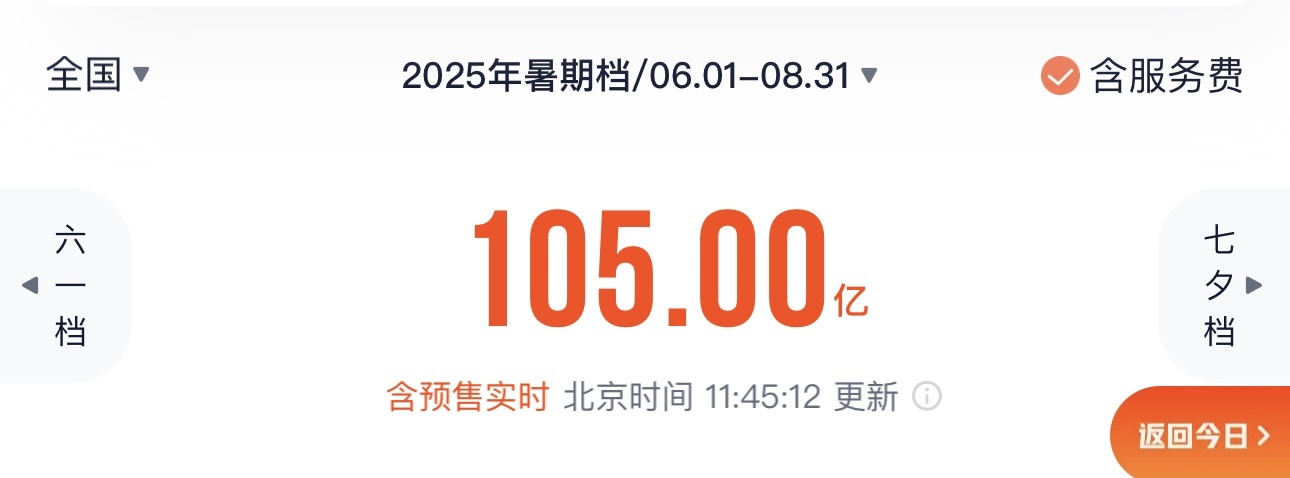 2025年暑期档电影总票房破105亿! 2025-08-22 11:51 央视新闻客户端 0 据网络平台数据 2025年暑期档(6—8月) 电影总票房(含预售)已突破105亿元 《南京照相馆》《浪浪山小妖怪》《长安的荔枝》 分列前三位 截至目前 2025年度电影总票房(含预售) 已超378亿 责任编辑:程雪涵