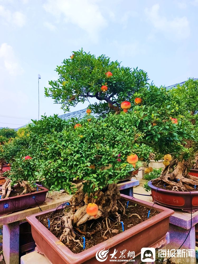 枣庄市峄城区作为全国七大石榴主产区之一,有着2000多年的石榴栽培历史。近年来,该区不满足于传统的石榴种植,而是把目光投向了石榴盆栽盆景,“全国石榴盆景之都”的名片越擦越亮。如今,这里每年能销售20多万盆石榴盆景,已然成为国内主要的石榴盆景制作销售基地。榴园镇是峄城区石榴产业发展的重要阵地,是当地石榴产业的核心区域。目前全镇专业盆景种植户达506户,盆景库存40万盆,年产值6.5亿元。该镇石榴产业发展服务中心主任赵作为介绍,受市场青睐的小微盆景因周期短、见效快,成为重点发展方向。游客自驾而来,常将几百元一盆的小微盆景作为伴手礼,既因石榴象征团结多福的寓意,也源于其便携易养的特性。
