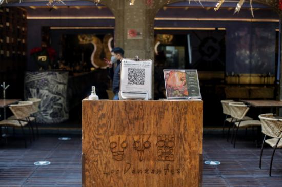 12月8日在墨西哥首都墨西哥城拍摄的一家餐馆门口的二维码。弗朗西斯科·卡涅多 摄