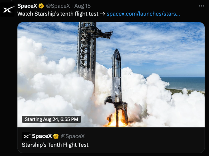 △SpaceX在社交媒体平台X上早早打出了试飞直播预告。