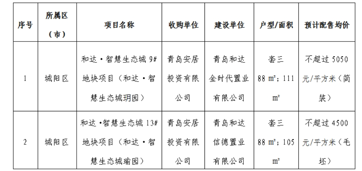 青岛日报社/观海新闻8月27日讯 今天,青岛市住房和城乡建设局发布和达·智慧生态城配售型保障性住房购买需求征集有关事宜的公告,为进一步做好收购已建成存量房用作配售型保障性住房工作,依城阳区住建部门申请,现对城阳区和达·智慧生态城项目开展购买需求征集工作。