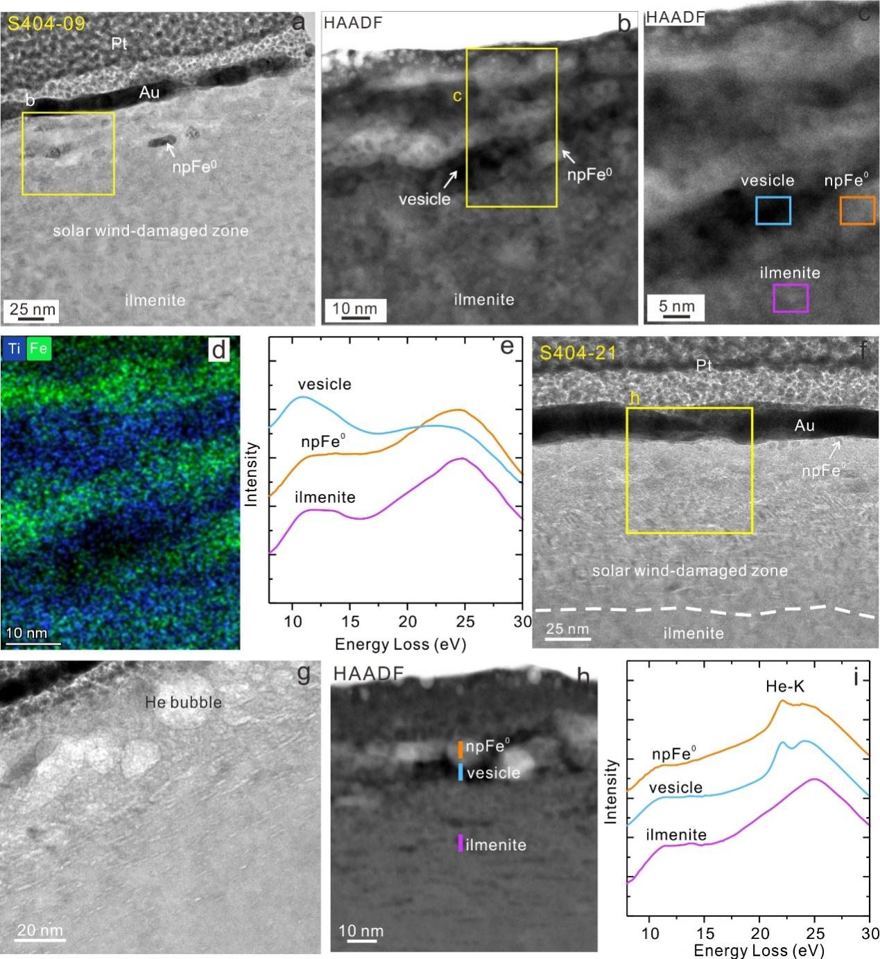 中国科学院国家空间科学中心与中国科学院地质与地球物理研究所联合团队对申请到的嫦娥五号月壤中的钛铁矿颗粒开展了水含量和H同位素的分析,并对其风化层的微观结构进行了研究。