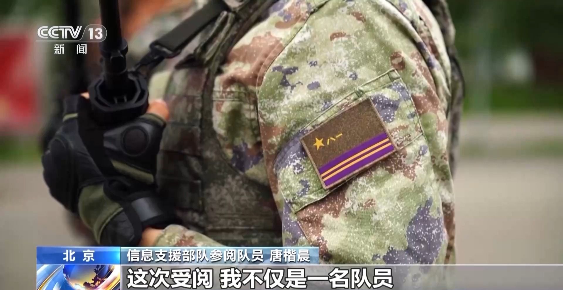 信息支援部队参阅方队 杨森:作为改革强军浪潮中诞生的新质力量,信息支援部队在这次阅兵中坚持从伟大抗战精神中吸取奋斗力量。全体官兵团结拼搏,争当一流,用最规范的动作、最昂扬的斗志展现新时代网信尖兵的亮丽风采。