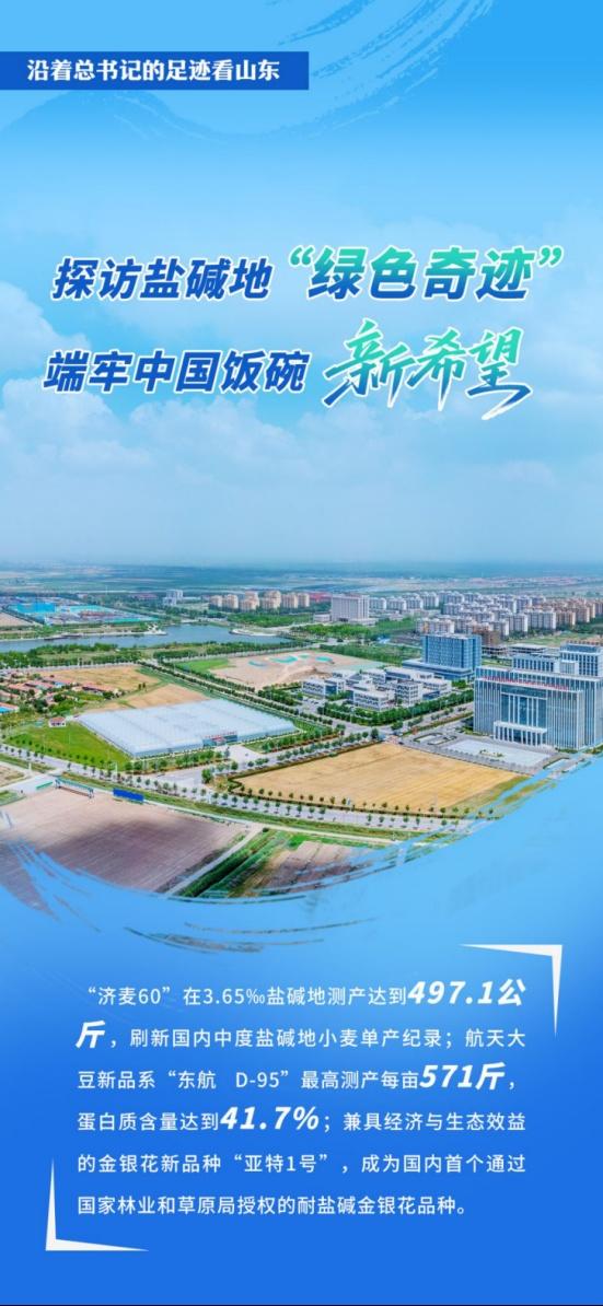 随着科研的不断攻坚,盐碱地上的奇迹也在不断上演。“济麦60”在3.65‰盐碱地测产达到497.1公斤,刷新国内中度盐碱地小麦单产纪录;航天大豆新品系“东航 D-95”最高测产每亩571斤,蛋白质含量达到41.7%;由一批院士领衔的科研团队研发的盐碱地适生饲草通量筛选与鉴定技术,形成了以“滨海草带”为核心的盐碱地综合利用新技术和新方案;兼具经济与生态效益的金银花新品种“亚特1号”,成为国内首个通过国家林业和草原局授权的耐盐碱金银花品种。