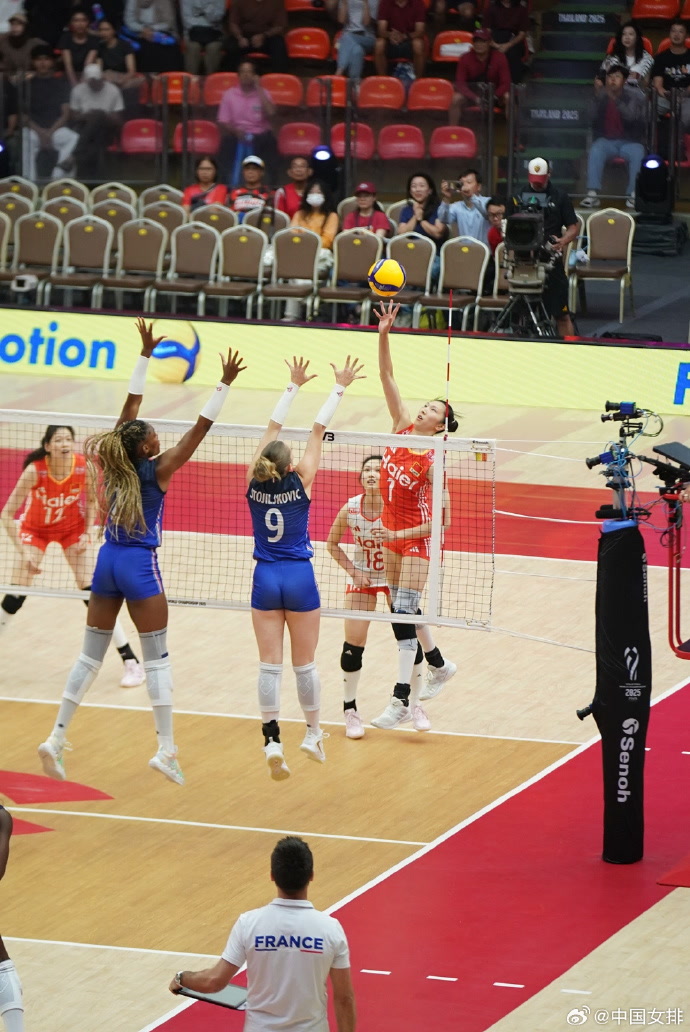8月31日,在泰国举行的2025年世界女排锦标赛一场16强赛较量中,中国女排1比3不敌法国队,无缘八强。