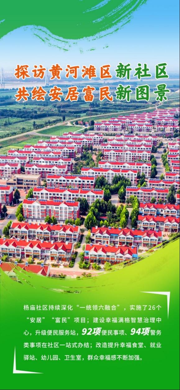 杨庙社区是黄河南展区群众集中居住社区,由11个房台村组成,现有社区居民1726户、5295人。2021年10月21日,总书记亲临社区视察,高度赞扬黄河滩区的巨大变迁和原蓄滞洪区民生工作取得的成绩,就建强基层党组织、建设幸福家园等作出系列重要指示要求。