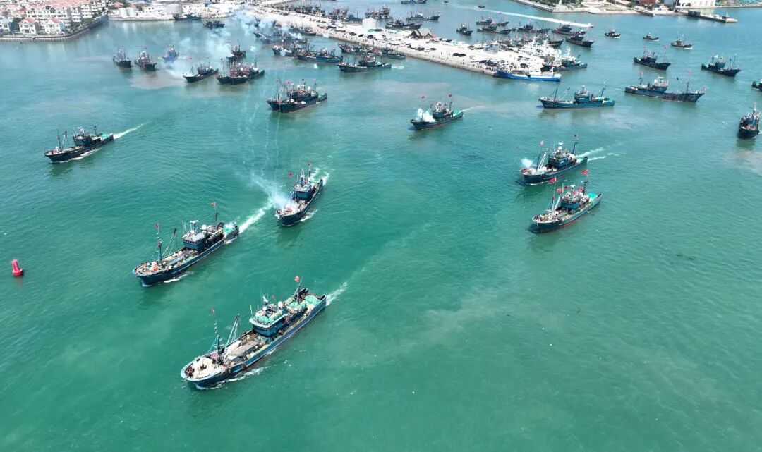中午12点,为期4个月的黄渤海区伏季休渔期正式结束。青岛3300余艘应休渔渔船从各渔港码头启航,争先恐后驶向黄渤海渔场。