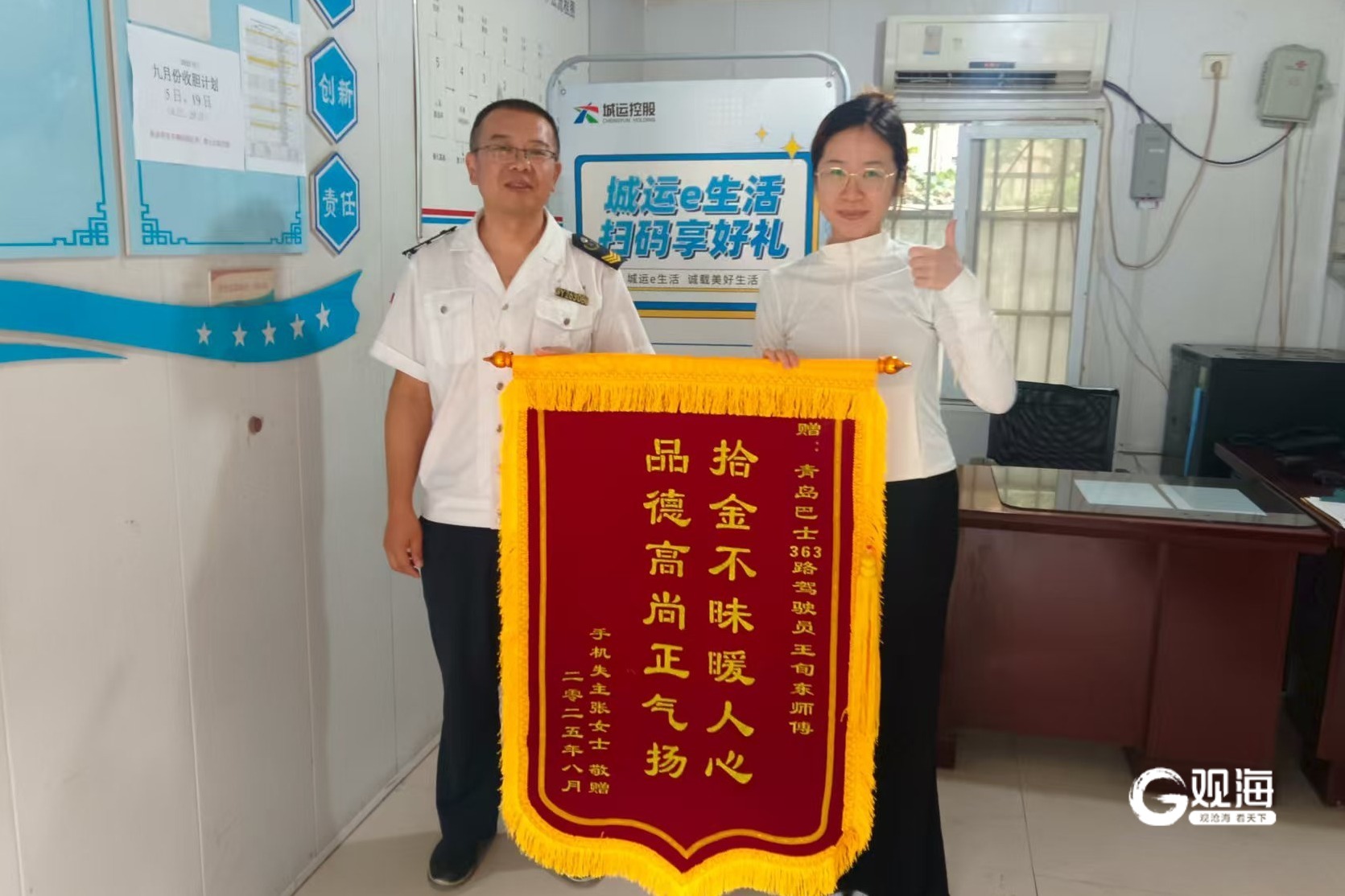 青岛日报社/观海新闻9月3日讯 9月2日傍晚,市民张女士来到青岛城运控股公交集团李沧巴士公司百通馨苑场站,将一面写有“拾金不昧暖人心 品德高尚扬正气”的锦旗送到363路驾驶员王旬东手中,表达对他高尚品德的诚挚谢意。这面锦旗的背后,揭开了一段拾金不昧的暖心故事。