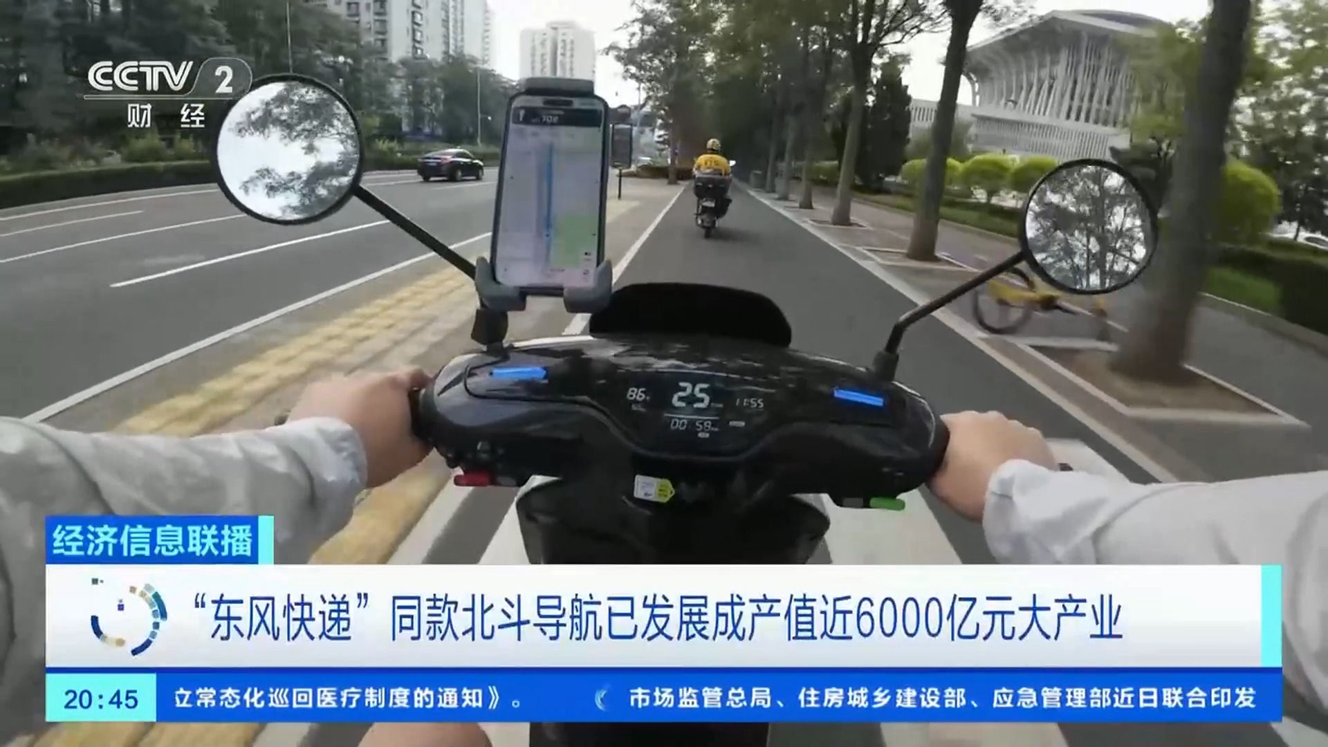 总台央视记者 王雷:再看身边,共享单车精准停车、外卖小哥秒级导航,用的是和“东风快递”同款的北斗导航!曾经被西方国家垄断的导航技术,在中国已经发展成为一个即将突破6000亿产值的大产业,从自动驾驶到精准播种、野生动物追踪,连无人机都要靠它指路。