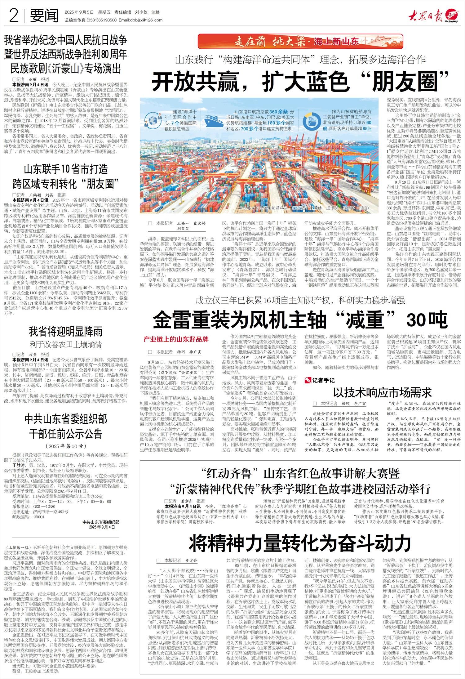面对挑战,张帅带领近百人的年轻研发团队开展集中攻坚,从材料强度、加工精度到质量稳定性逐一突破。历经一个多月,团队最终成功将主轴重量降至50吨左右,实现大幅“瘦身”。同时,该产品在抗拉强度、屈服强度、断后伸长率等多项关键指标上均领先国内同类产品,达到国际先进水平。“以每吨节约一万元成本估算,这一项就为客户省下30万元。”看着新产品在生产线上逐渐成型,张帅说。