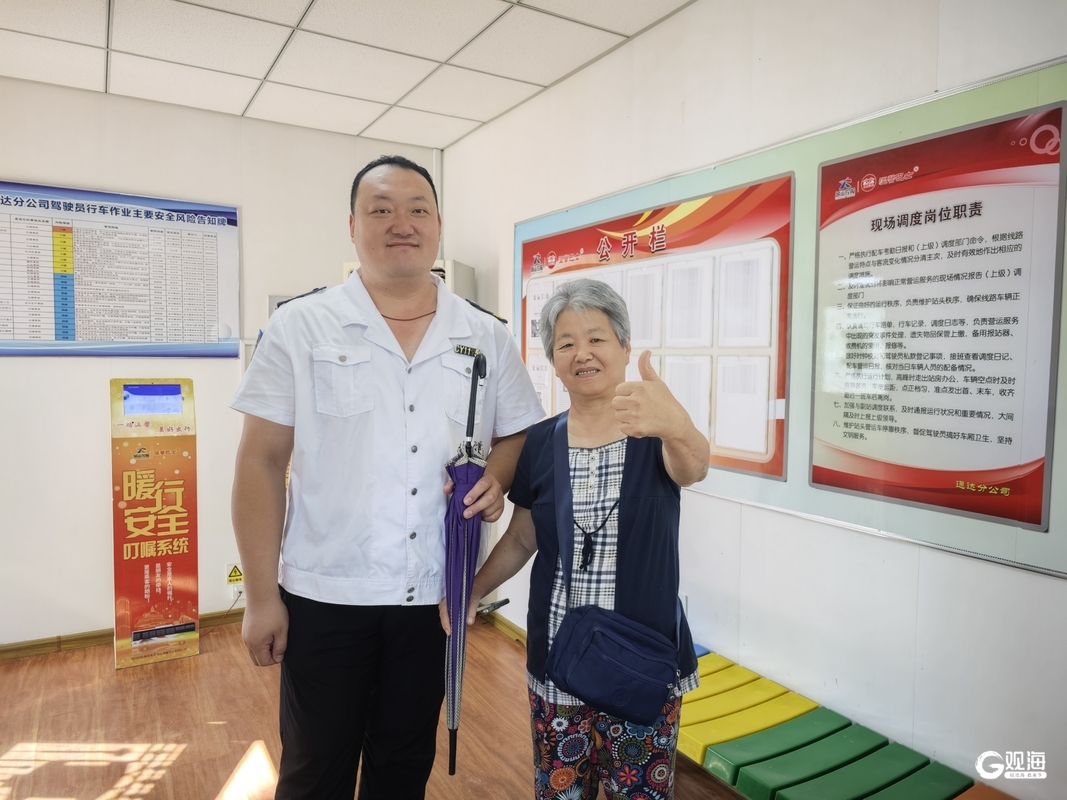 无独有偶。9月4日,青岛城运控股交运温馨巴士通达分公司606路调度室迎来一位七旬老人刘大姨。她此行目的有二:一是归还一把雨伞,二是表扬车牌号为鲁BV2575的驾驶员傅东祥。