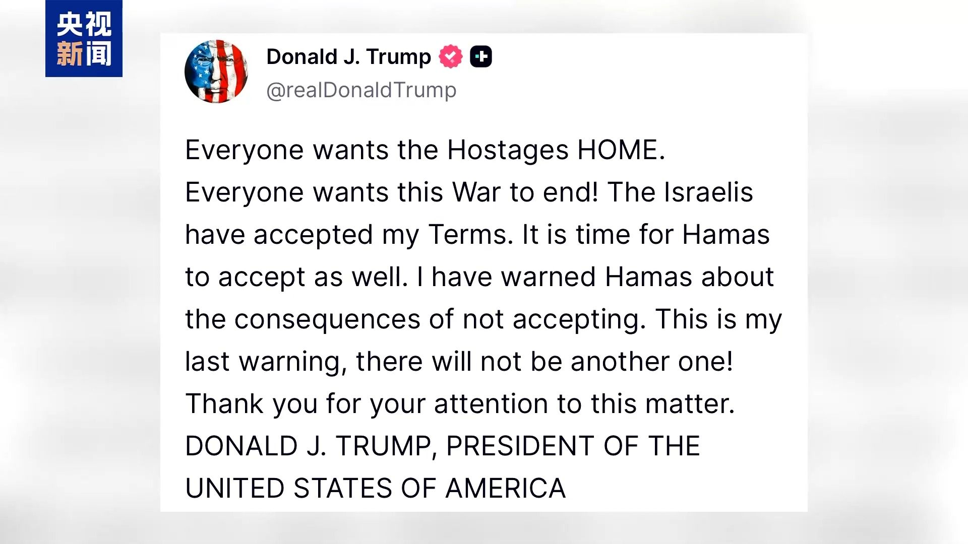 据半岛电视台报道,美方的提议包括哈马斯释放所有剩余的48名被扣押人员,以色列方面释放约3000名巴勒斯坦被扣押人员;以及以色列不会占领加沙城。