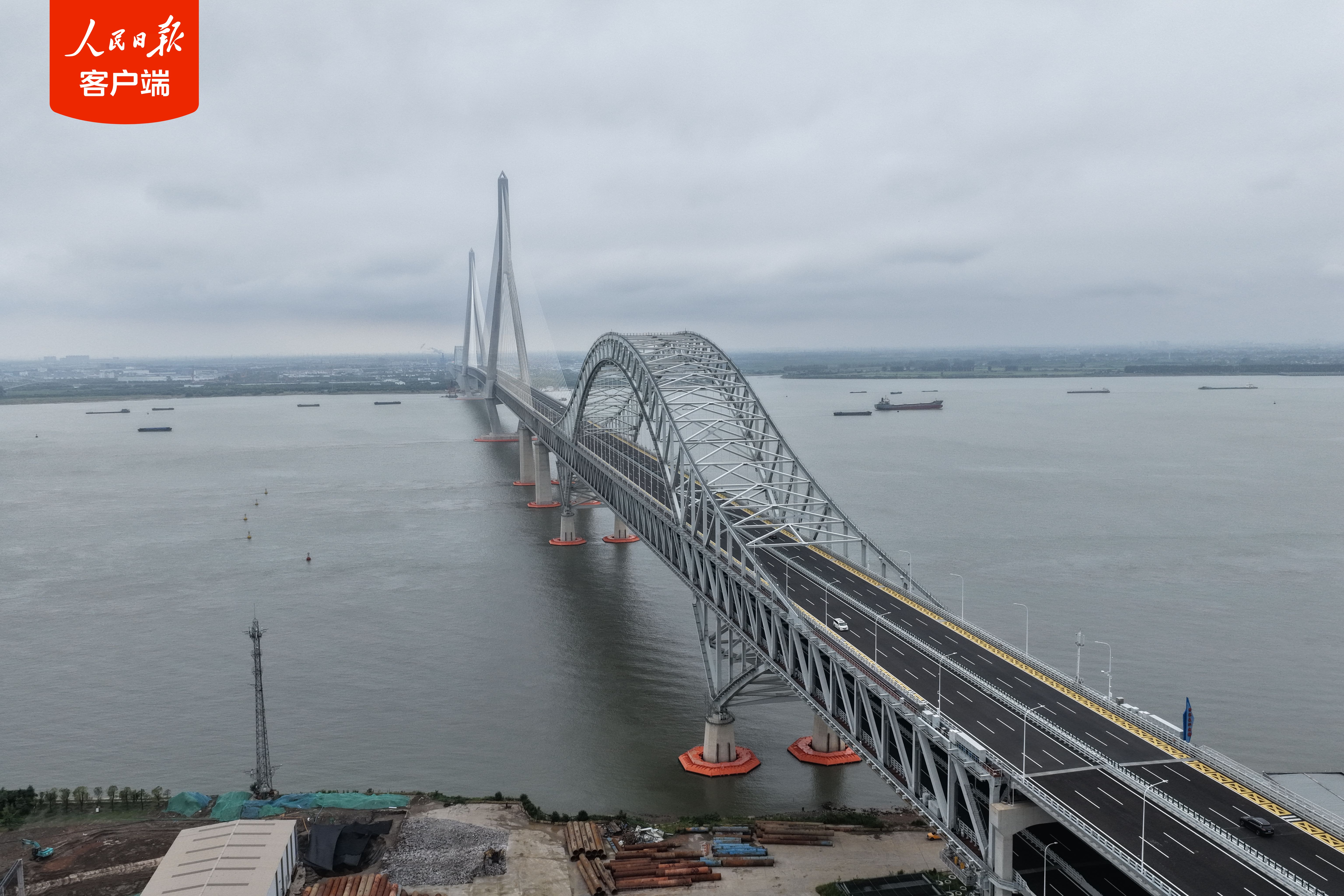大桥自2019年10月全面开工建设,到今年8月建成,全线为一座公铁合建双层复合型过江通道,公路部分为如常高速公路(S30)的过江段。上层为双向六车道,向北经泰兴东枢纽连接沪陕高速公路(G40),向南经常州高新区枢纽连接江宜高速公路(S39);下层为双向四车道,北接泰州泰兴市六圩港大道,南接常州新北区港区大道。