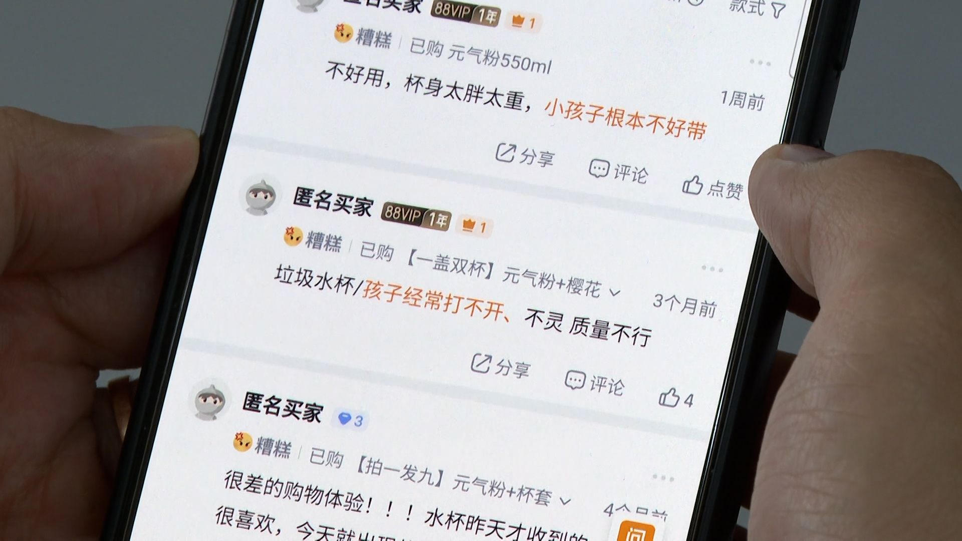 在指纹水杯的电商直播间内,主播们也在不断强调喝水安全。然而,打开商品评价页面,却有不少消费者留言说“指纹锁容易死机,孩子喝不上水”“指纹不灵敏”“小孩不太会用”等。