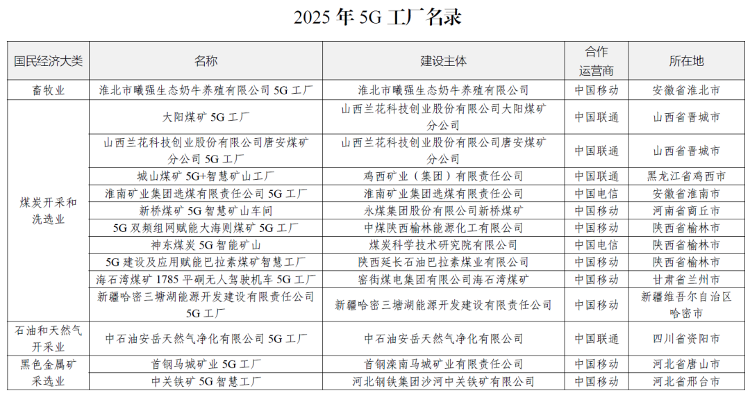 为深入实施工业互联网创新发展战略,加快推进“5G+工业互联网”高质量发展和规模化应用,打造5G工厂中国品牌,各地依据《5G全连接工厂建设指南》(工信厅信管〔2022〕23号)加快推动5G工厂建设,取得积极成效。经地方推荐,专家评审以及公示等程序,工业和信息化部办公厅公布了2025年5G工厂名录,48个行业560个项目上榜。