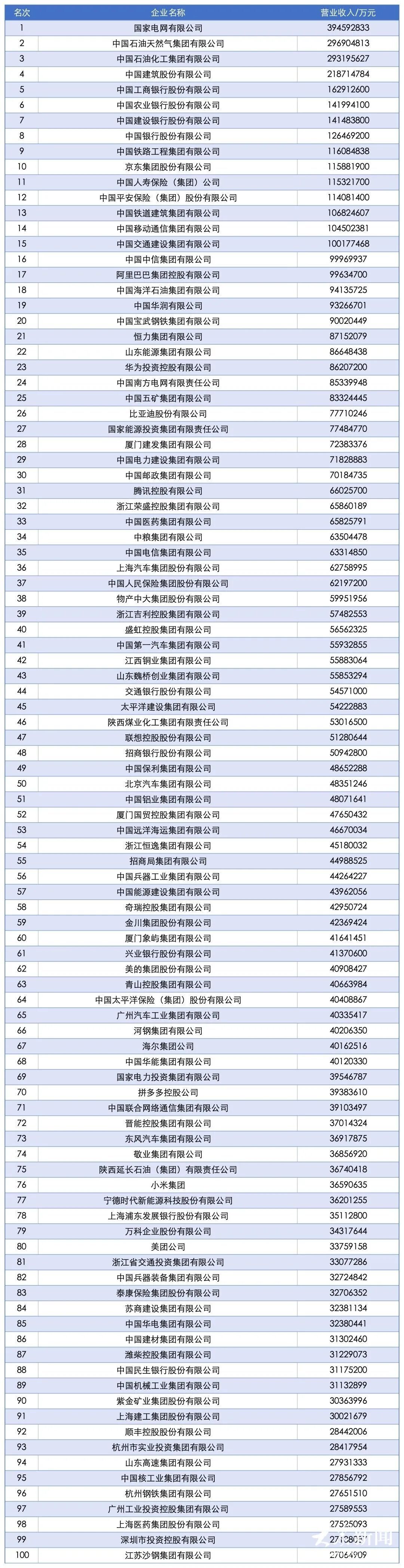 9月15日,2025中国企业500强榜单对外发布。位列前10位的企业是国家电网、中国石油天然气集团、中国石油化工集团、中国建筑、中国工商银行、中国农业银行、中国建设银行、中国银行、中国铁路工程集团、京东集团。其中,山东有52家企业上榜,包括18家国营企业,34家民营企业。
