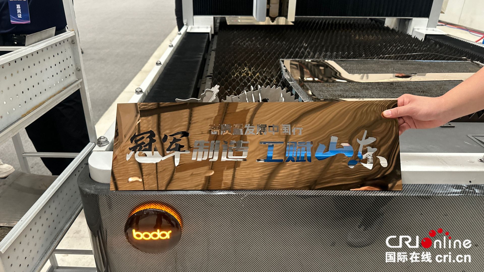 邦德激光切割机精准切割出“高质量发展中国行——冠军制造 工赋山东”字样(摄影 丁天怡)