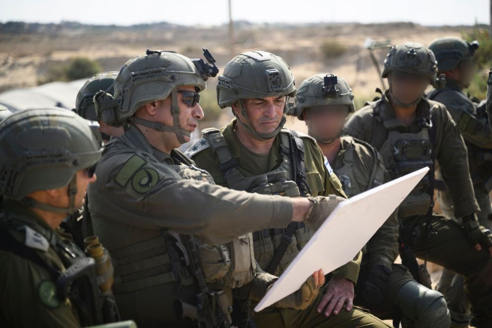 这是9月16日在加沙地带拍摄的以军总参谋长埃亚勒·扎米尔(中)。新华社发(以色列国防军供图)