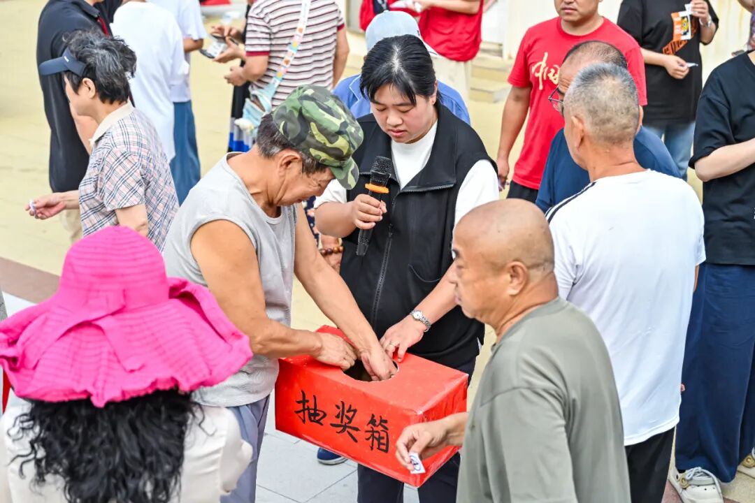 比赛尾声,最令人期待的颁奖环节到来。青岛小袄关爱社区服务有限公司李总走上台,先后为幸运奖得主及冠亚季军送上精心准备的奖品。未获奖的选手也领到了参与奖,大家围着奖品合影,定格欢乐瞬间。
