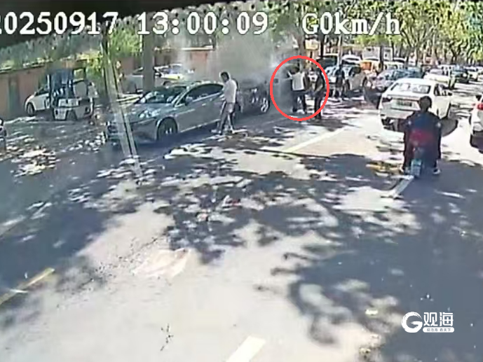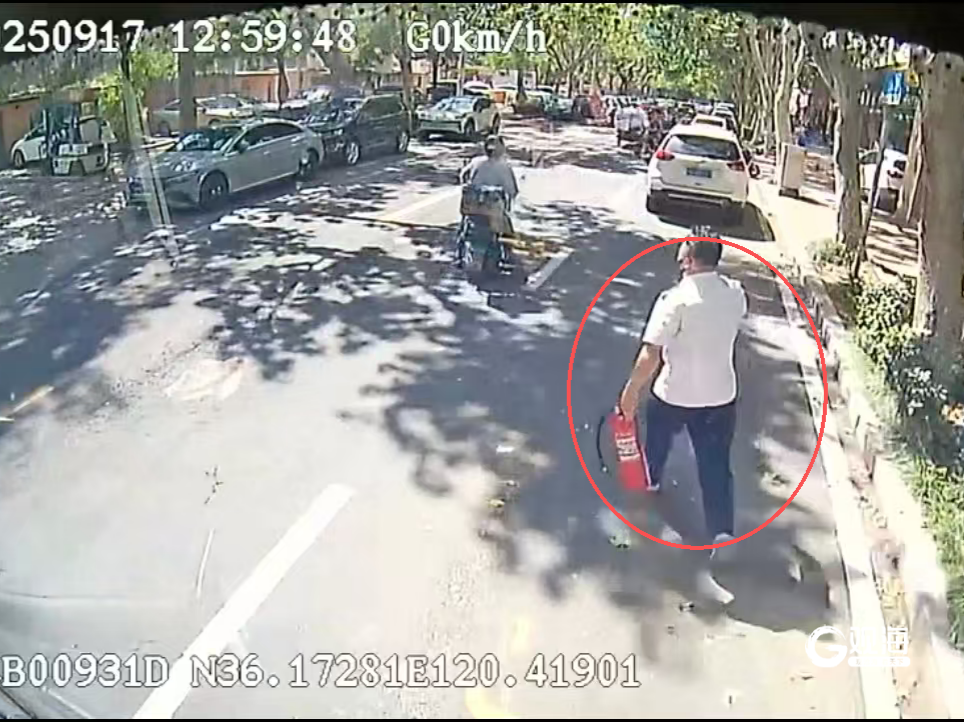 李先明听到后,顺势向外卖员手指的方向看去,果然路边一辆私家车冒出了黑烟,他立即与车内乘客说明情况,安全停稳车辆后,拎起车载灭火器冲向自燃车辆。
