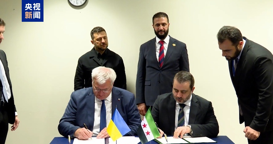 当地时间24日,乌克兰总统泽连斯基在纽约发布消息称,在与叙利亚政权领导人沙拉会谈期间签署了乌克兰与叙利亚关于恢复外交关系的联合公报。