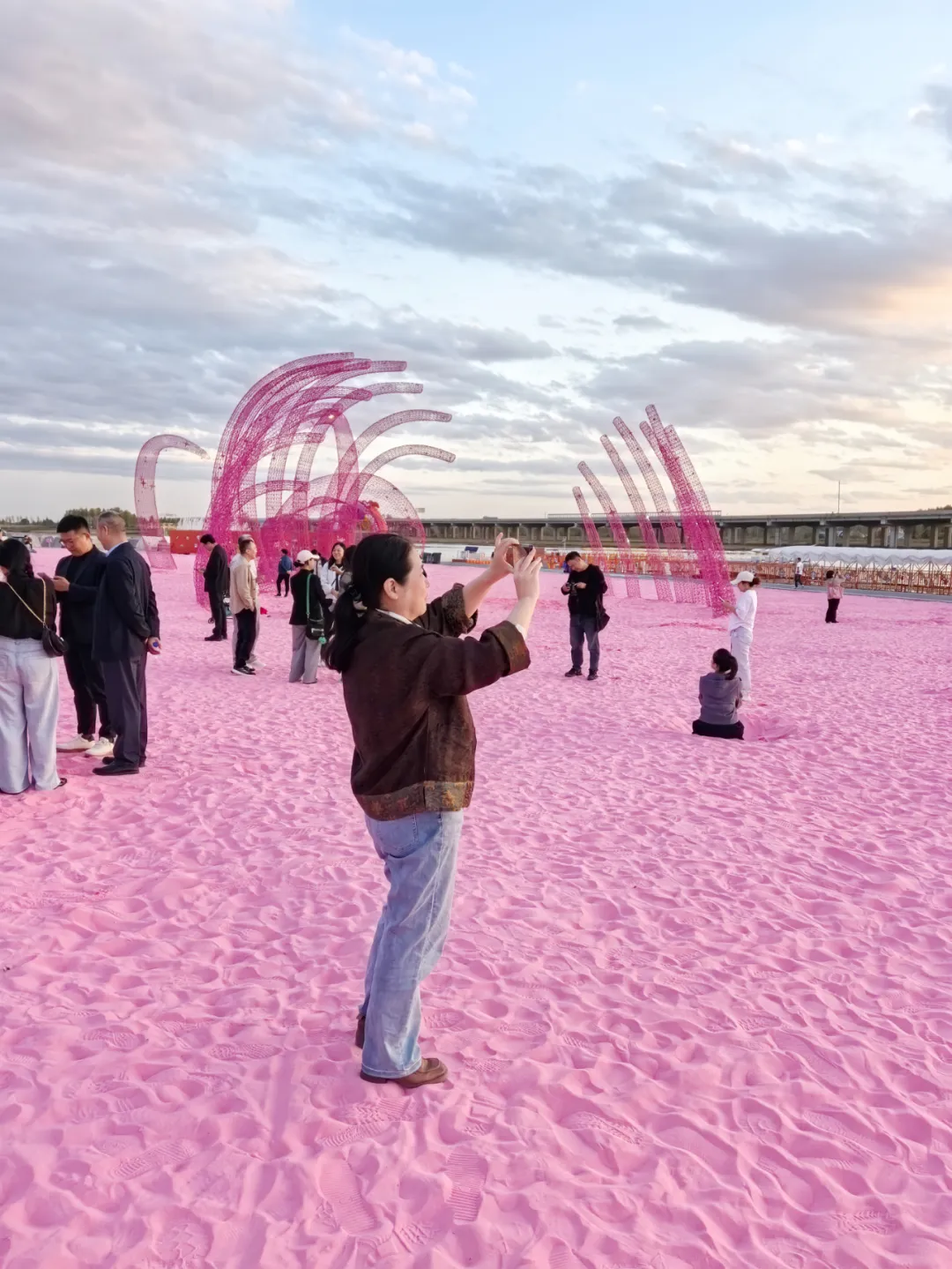 粉色沙滩作为肆季南河的特色,成为了此次采访的焦点。大家踏上柔软的粉色沙滩,拍照打卡,沉浸式感受独特的魅力。现场,大家纷纷提出疑问“粉沙子来源哪里?”“是否需要经常补沙?”“冬季如何维护?”管理人员精细化的营运思路、活动策划等获得了大家的认可。大连日报总编室负责人姜云飞表示,肆季南河把生态与运维细节结合,既保障了吸引力,又体现了城市建设的严谨性,这种 “颜值与实力兼具” 的模式很有创意。