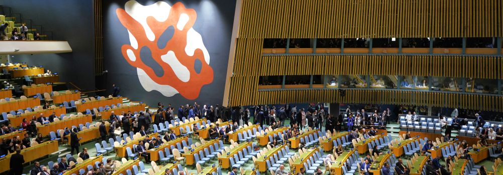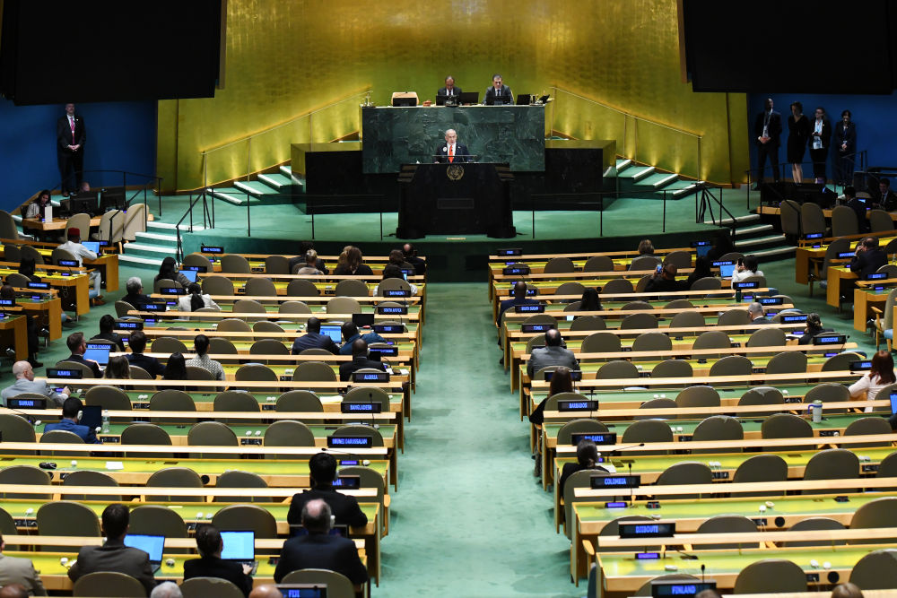 9月26日,在位于纽约的联合国总部,众多代表退场抗议。新华社记者李睿摄