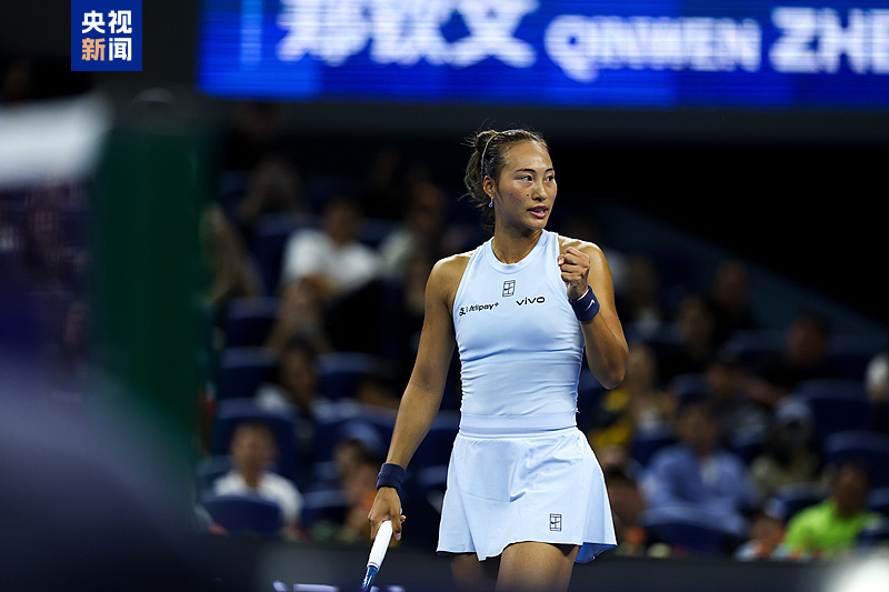 △9月27日,WTA1000中国公开赛,郑钦文在比赛中。