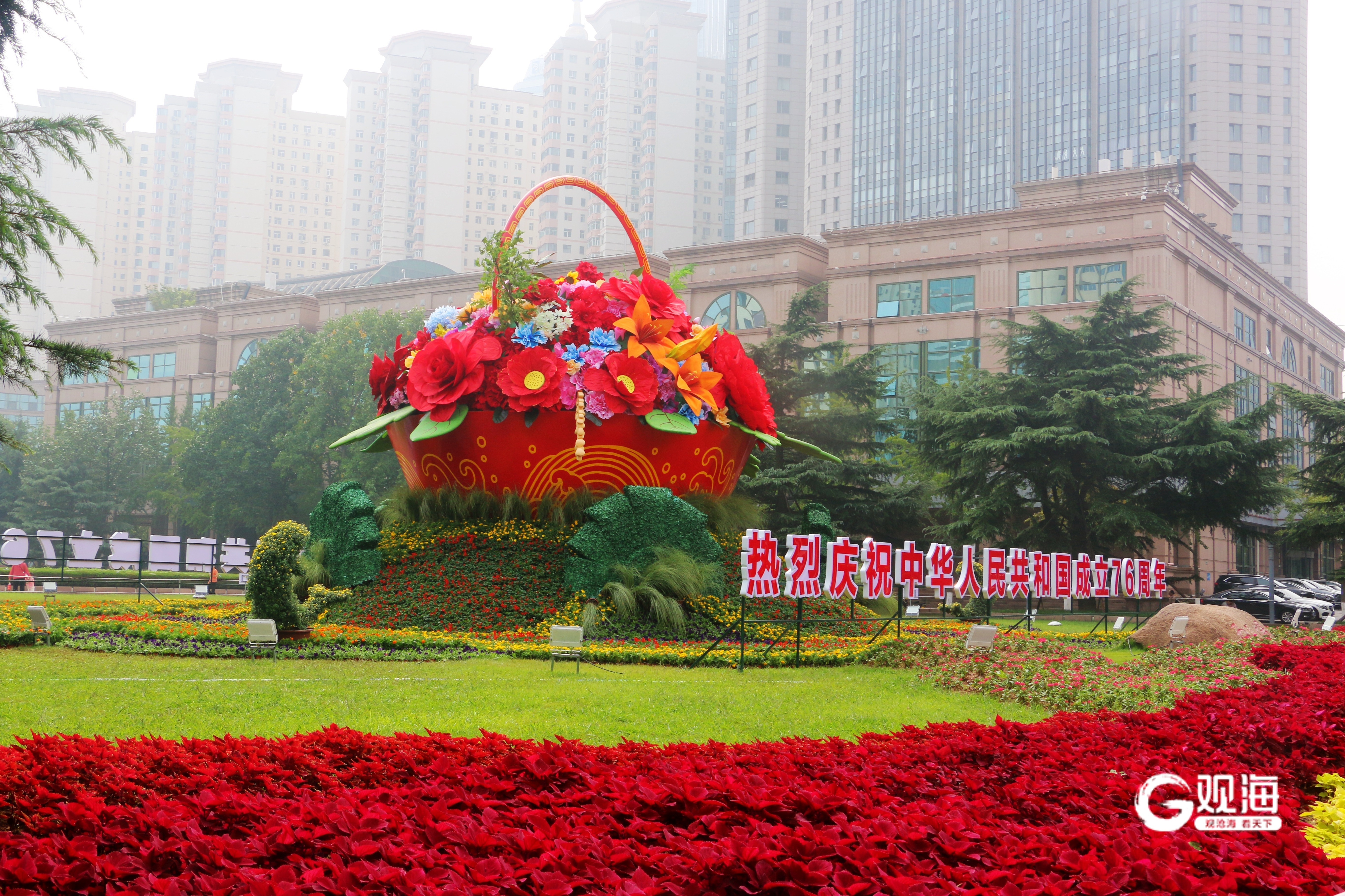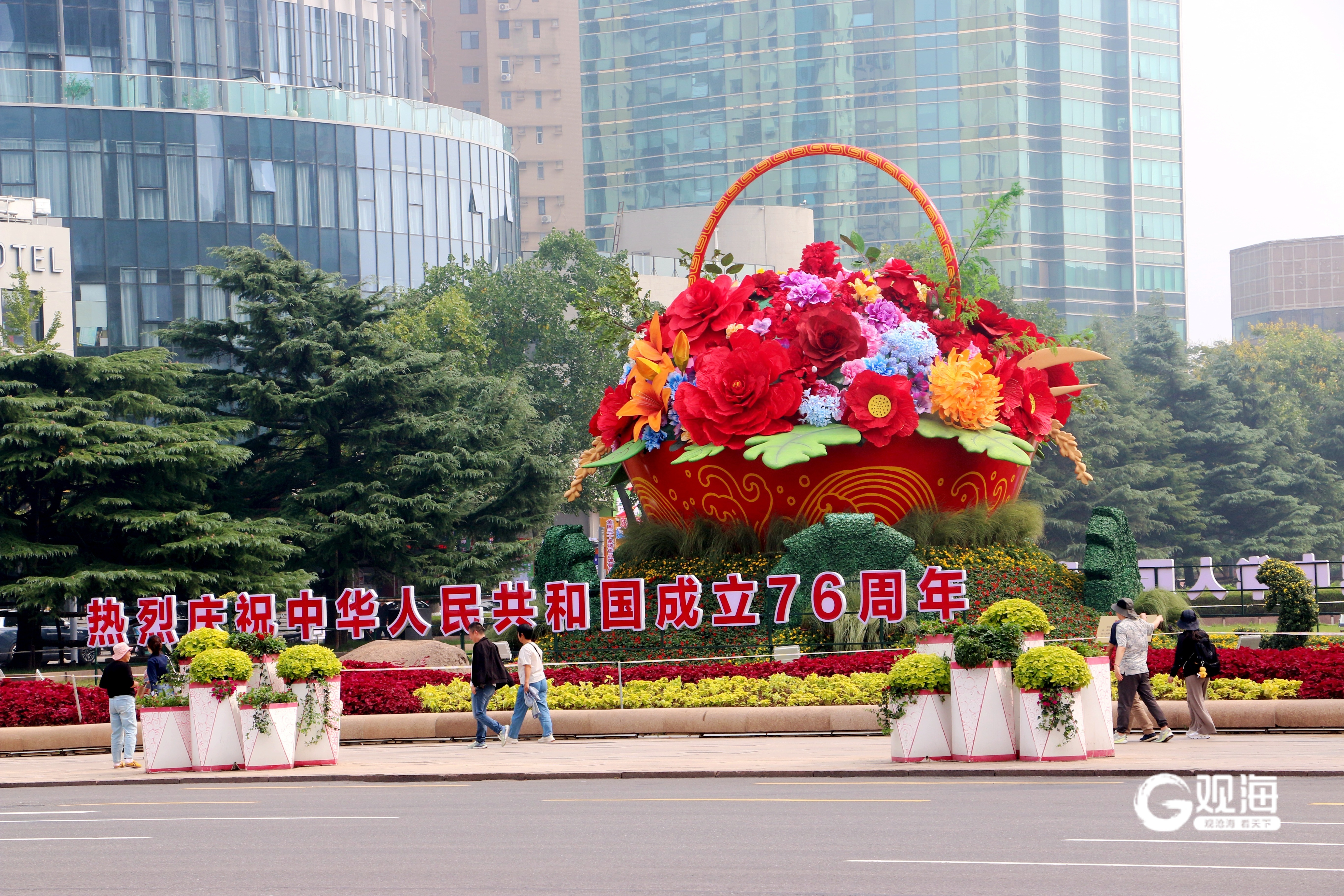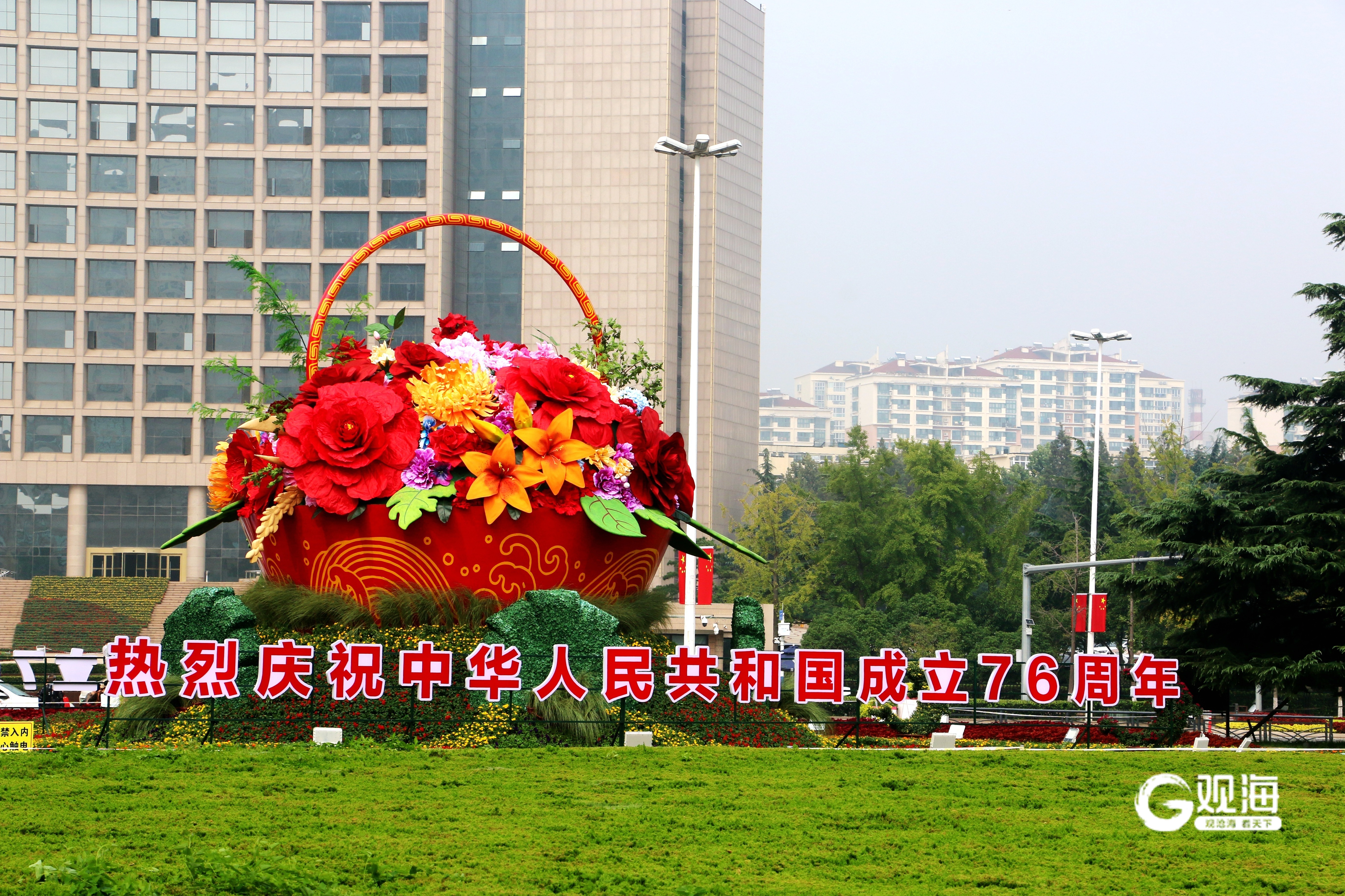 青岛日报社/观海新闻9月29日讯 随着国庆节临近,青岛五四广场的节日氛围已然拉满。“热烈庆祝中华人民共和国成立76周年”主题景观花坛亮相,硕大的喜庆花篮簇拥着满满祝福。