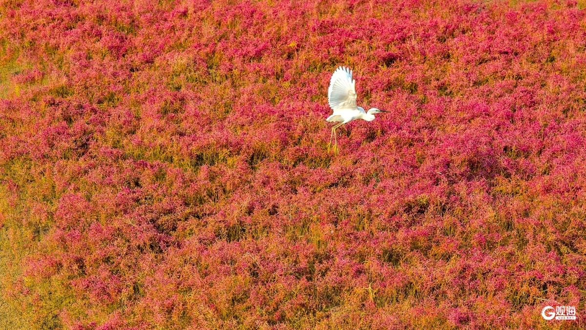 9月29日,胶州湾湿地红海滩美不胜收,白鹭在滩涂上翔舞觅食,几艘老船静泊其间,沧桑而诗意。游客沉醉在这秋日限定的美景中,流连忘返。近年来,当地持续加大保护力度,使得红海滩生态环境持续好转,生物多样性得到有效恢复。(青岛日报/观海新闻记者 王凯 通讯员 韩加君)