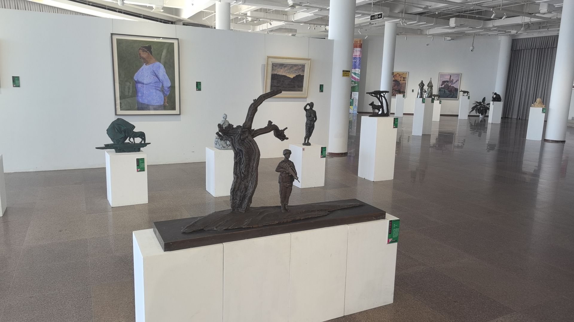 该展览由青岛市公共空间艺术促进中心与内蒙古艺术学院联合主办,将持续至10月12日,共展出内蒙古艺术学院43位师生的113件/组雕塑和水彩作品。