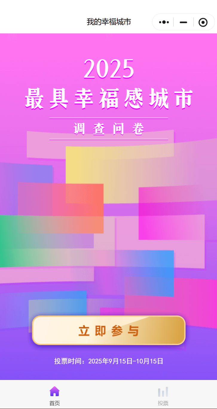 2.点击左下角“幸福城市”,找到“幸福城市网络问卷”
