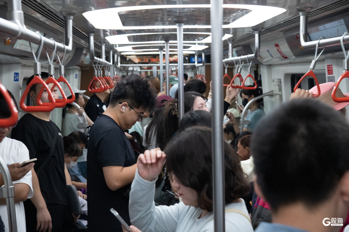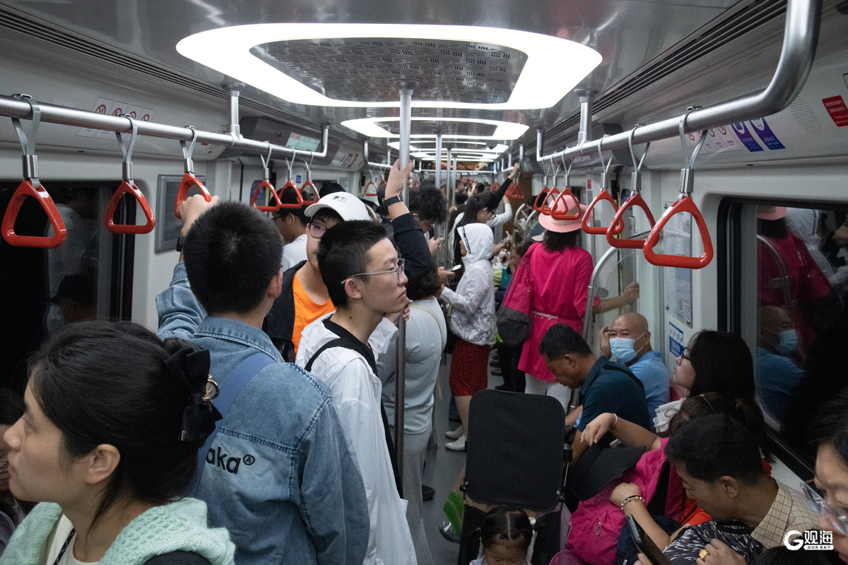 青岛日报社/观海新闻10月1日讯 国庆假期首日,记者在地铁青岛北站、台东、五四广场等站点看到,各站点人潮涌动。作为一种快捷、安全、绿色且经济的出行方式,“乘着地铁逛青岛”已然成为越来越多游客的出行选择。为保障市民游客假期顺畅出行,青岛地铁通过缩短行车间隔、增加备用列车,并在全线网保持旅游旺季运营时间等措施,有效提升运输能力与服务效率,为市民和游客带来更加便捷、高效的出行体验。(青岛日报/观海新闻记者 刘栋 摄影报道)