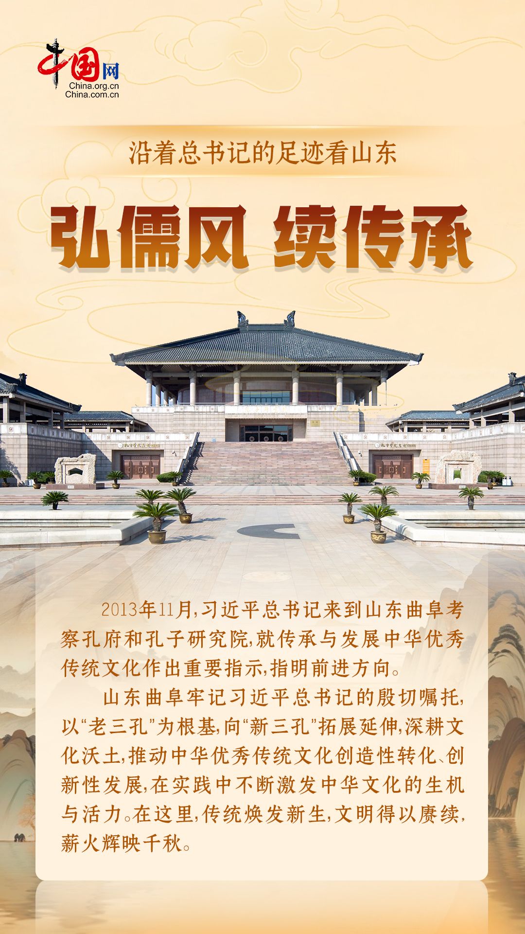万仞宫墙前,学子齐诵《论语》,声震云霄;尼山圣境,孔子巨像沐光矗立,礼仪传承庄严有序。古风与今韵交相辉映。跟随习近平总书记的足迹,穿越千年的儒家智慧,已转化为百姓的获得感、城乡治理的效能、时代浪潮中的生动实践,更汇聚起文化自信的磅礴力量。