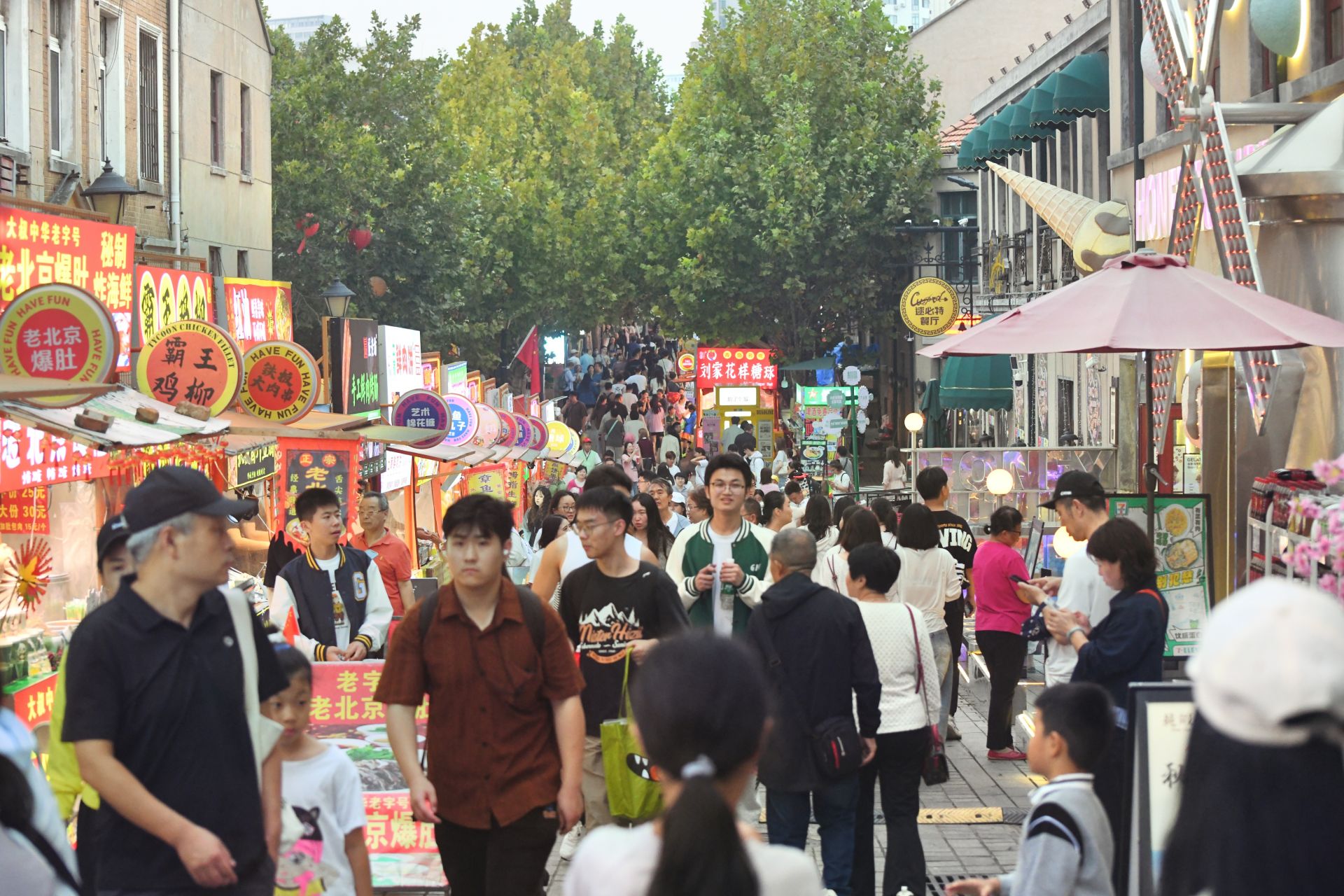 青岛日报社/观海新闻10月1日讯国庆假期第一天,青岛老城区人气持续攀升,下午5点左右中山路、大鲍岛等历史街区人流如织,节日氛围浓厚。尽管里院喜剧节已于节前收官,但其带来的文化热度持续发酵,成为吸引市民游客走进老城的重要推力。(青岛日报/观海新闻记者 王雷文/图)