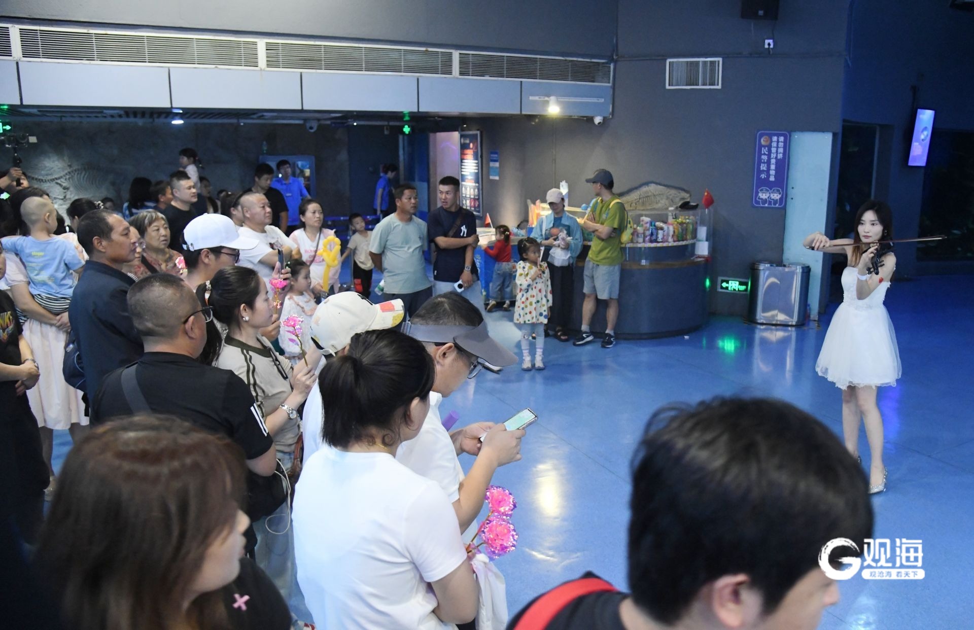 夜幕降临,海洋馆的热度依然不减。尽管已近晚上七点,夜场入口处的售票窗口前依然排着长长的队伍。许多游客专程为夜场特惠(成人99元,儿童39.9元)和独有的海底灯光秀而来。绚烂的光影将海底隧道装点得如梦似幻,游客们摩肩接踵地穿行其中,不时发出阵阵惊叹。泡泡巡游队伍所到之处,立刻引发围观和拍照热潮,北极熊NPC更是被大小粉丝们团团围住。(青岛日报/观海新闻记者 王雷 文/图)