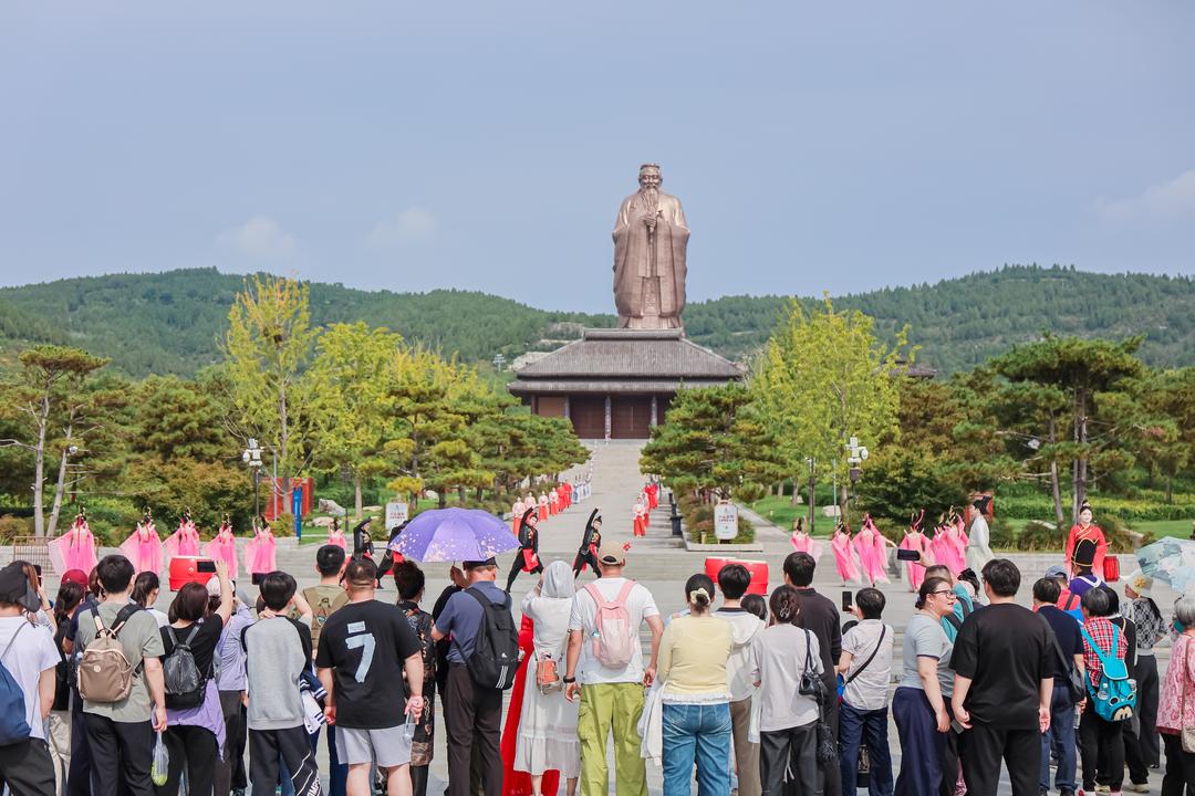 更深层次的创新在于文化表达的现代转化。在尼山圣境景区72米高孔子像前,古代庄重的儒家仪式被转化为游客可参与、可体验的日常活动。由“明礼官”引导完成“正衣冠、行揖礼”等流程,游客不再是旁观者,而是仪式的一部分。“创造性转化和创新性发展是关键。这种‘仪式感体验’是吸引家庭游客和研学团队的重要流量来源。”周巍介绍,让孔子文化从书本和殿堂中走出来,变得可亲、可感、可玩,受到更广泛客群的欢迎,包括年轻家庭、Z世代年轻人和文化爱好者。