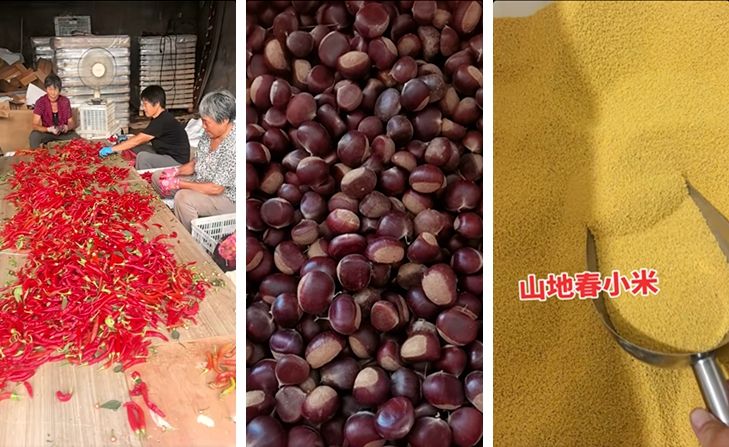 这个时节,村民们种植的辣椒、板栗、小米等是张吉花直播间里的常客。