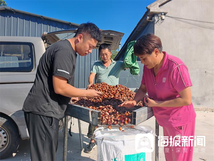 “帮我看看这些板栗多少斤?”张吉花正开着直播,同村的板栗种植户刘兆伟开着三轮车来了。他是来卖板栗的,称重、核算,270斤,他收到1100元钱。“从这卖能卖个好价格,还方便。”刘兆伟很满意。这些板栗很快就会出现在张吉花的直播间里,通常一两天内就会售出并发往全国各地。