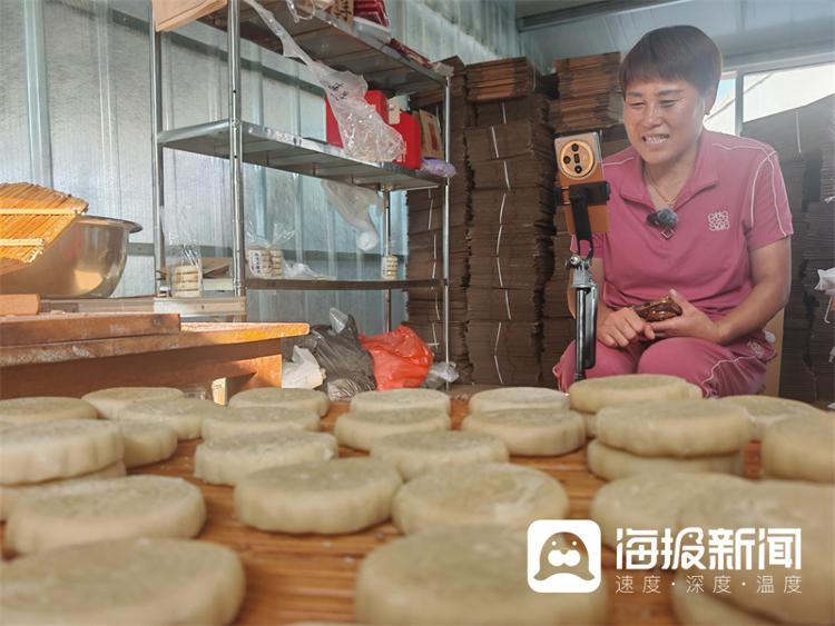 9月25日,走进日照市五莲县石场乡前坪头村的庄户嫂手工煎饼坊,包馅、压模、烤制……村里的妇女正熟练地加工月饼,转眼间,一锅纯手工老式月饼就做好了,满屋飘香。张吉花正开着手机直播,一边现场做月饼,一边向网友们介绍。今年国庆节和中秋节挨着,节日的气氛格外浓烈,销售情况也不错,这款地方特色的手工月饼每天销量近百斤。