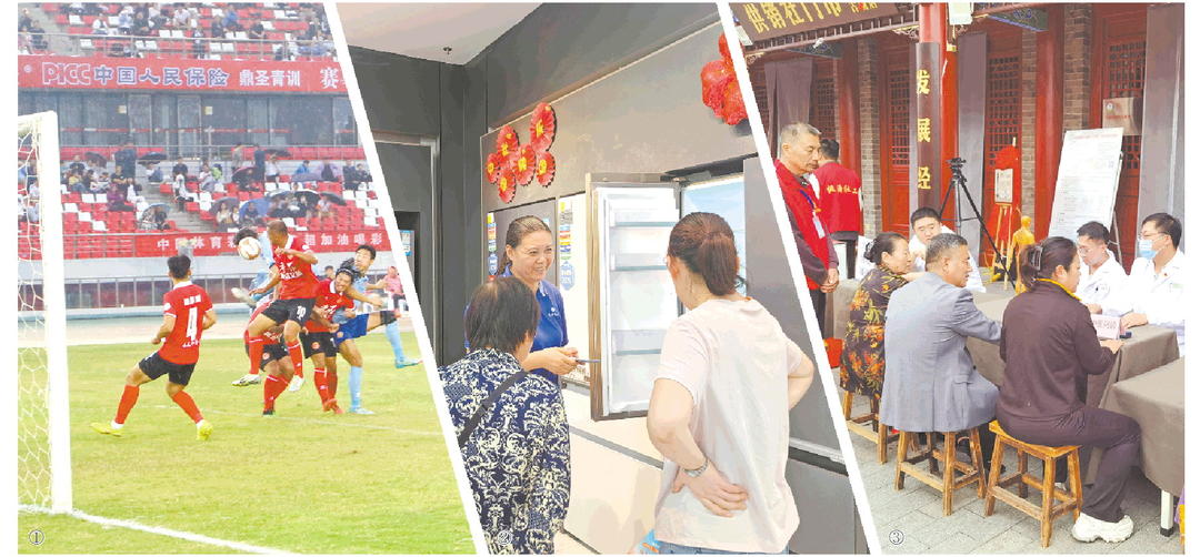 图①:齐鲁超赛枣庄站揭幕战。图②:日照市民在凌云家电城选购家电。图③:中医在无棣古城免费问诊。