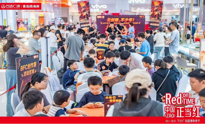 西海岸万达广场推出“当红不让”生活节,紧扣“中国正当红”双节主题。王牌活动“红动奇妙夜”融合水上飞人与灯光秀,呈现视觉盛宴;开展向热爱奔跑·趣味彩虹亲子跑、国庆八天乐·亲子公开课堂、国风运动·少儿武术友谊赛等形式多样的文娱活动,营造沉浸式节庆消费氛围。带动节日期间销售额增长13%。