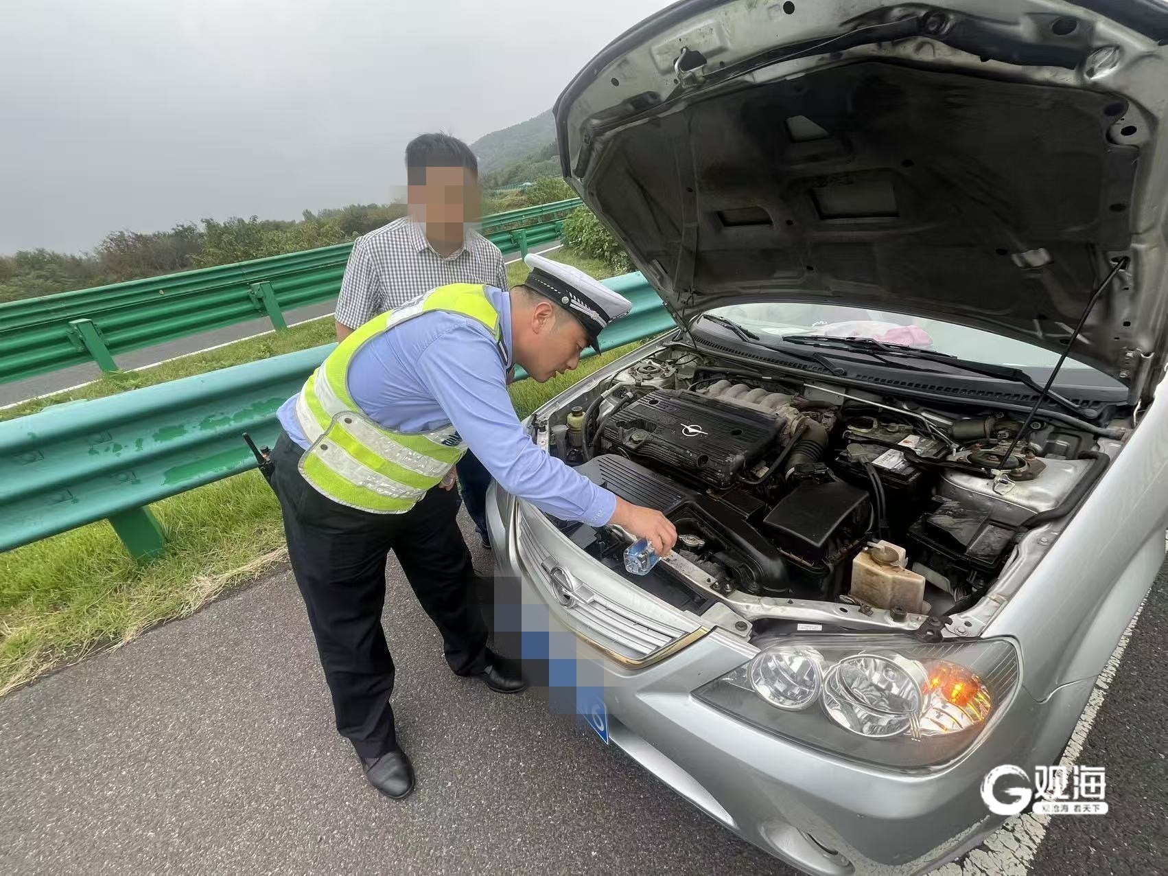 汽车缺水高温故障抛锚,高速交警帮忙解困