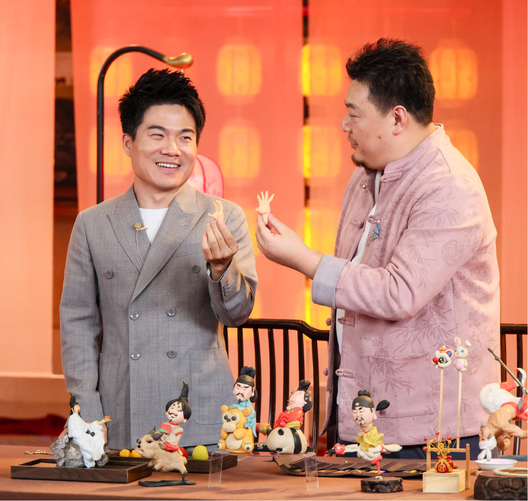 10月6日,“长相思·在长安”2025中秋月宴直播现场,董宇辉体验面塑技艺的制作过程。