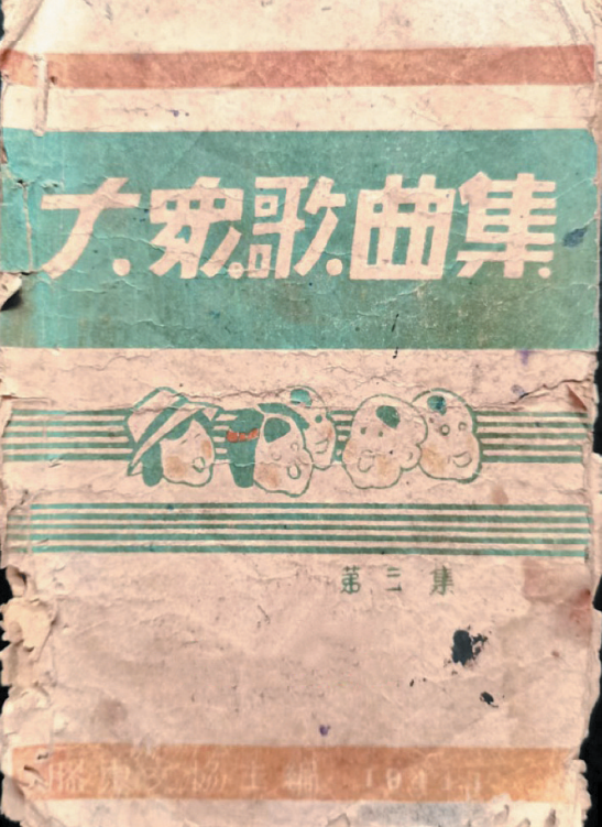 笔者珍藏着父辈传下来的一册《大众歌曲集》(第三集),1944年1月出版,残破的封面上留有当年的烟尘与指痕。这是胶东抗日军民创作的第一本歌曲集,由胶东文化界抗日救国协会编印。它见证了胶东人民在抗日救亡的歌声中发动武装起义,又在歌声中前赴后继,赢得抗战胜利和民族解放的艰难历程。