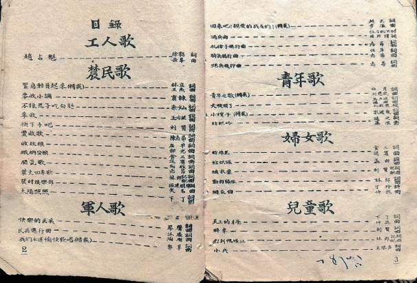 1944年1月出版的《大众歌曲集》第三集部分目录。