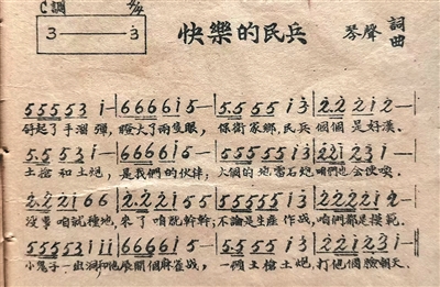 ■王琴声作词作曲的《快乐的民兵》(载1944年《大众歌曲集》第三集)。