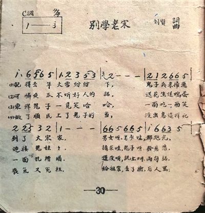 刘贤作词作曲的《别学老宋》(载1944年《大众歌曲集》第三集)。