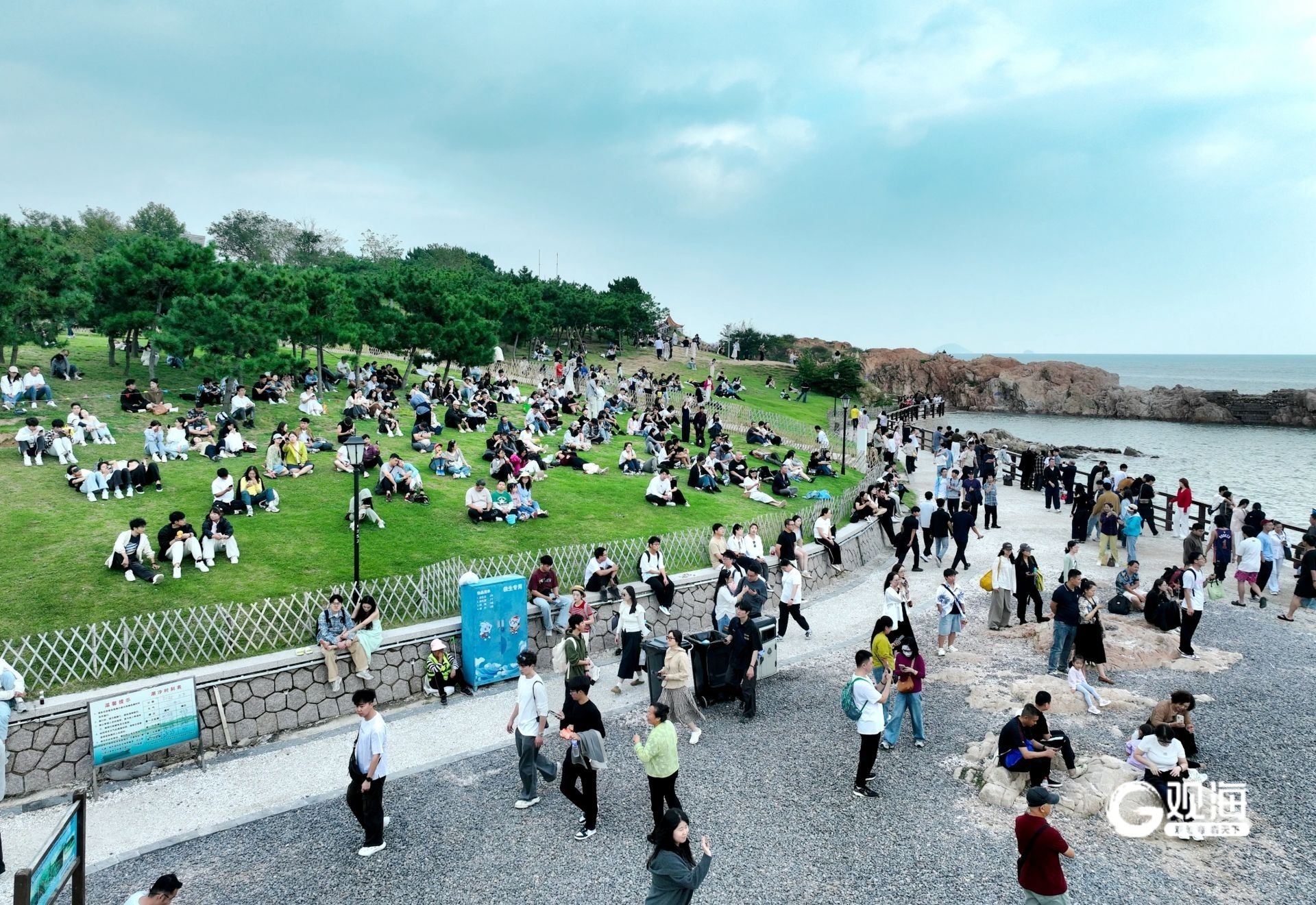 8日午后开始,通往小麦岛的道路便已呈现川流不息之势。人们扶老携幼,成群结队,脸上洋溢着假日的余暇与惬意。标志性的滨海步道上,人流如织,前行速度缓慢,形成了一条蜿蜒起伏的“人龙”。开阔的斜坡草坪被五彩斑斓的野餐垫和驻足的人群所覆盖,几乎难觅空隙,欢声笑语与海浪声交织成一曲生动的假日交响。(青岛日报/观海新闻 记者 王雷 文/图)